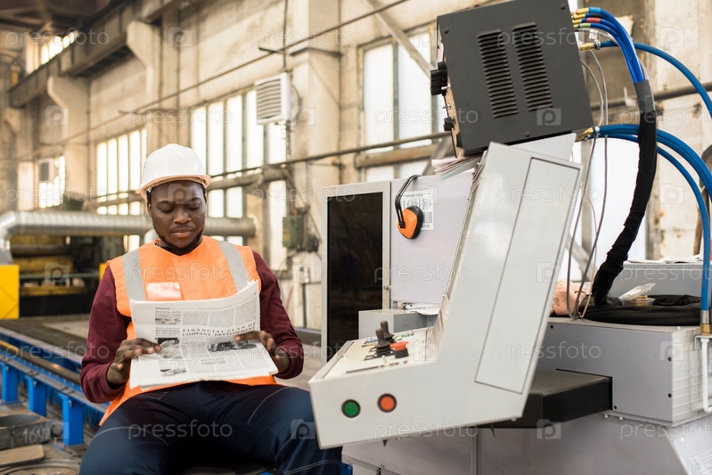 Расслабленный оператор машины читает газету