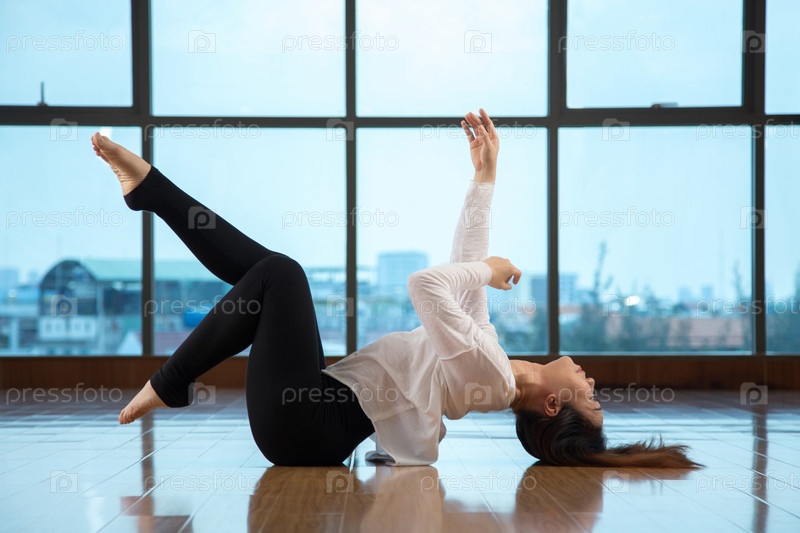 Азиатская женщина, лежащая на полу во время танцев
