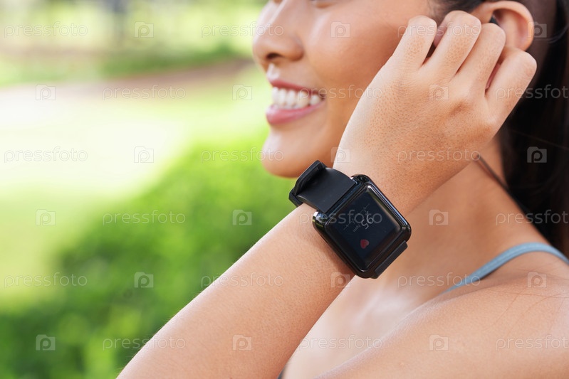 Женщина с урожаем, носящая умные часы
