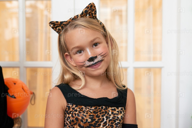 Девушка в костюме кошки на Хэллоуин