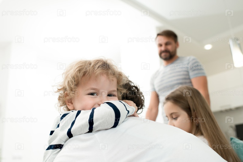Милый мальчик обнимает маму