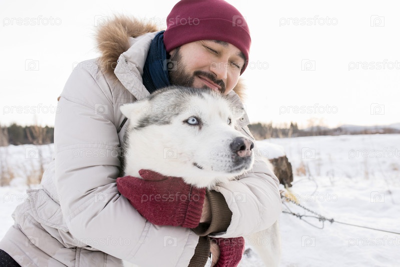 Азиатский мужчина с любящим домашним питомцем