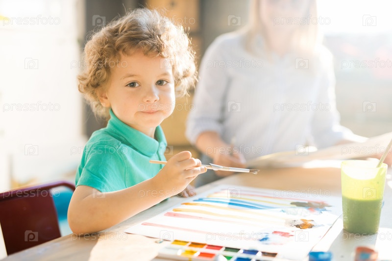Картина мальчика с кудрявыми волосами в солнечном свете