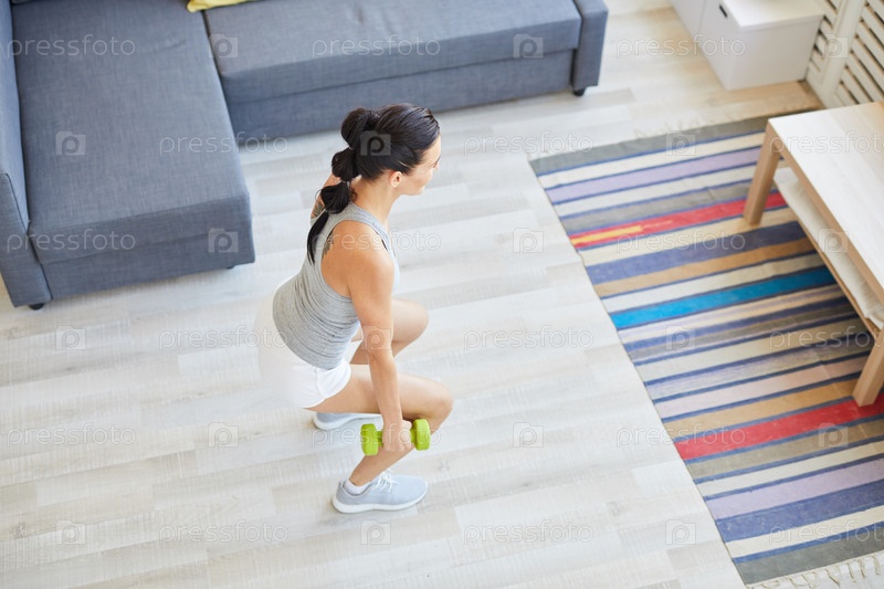 Девушка приседает