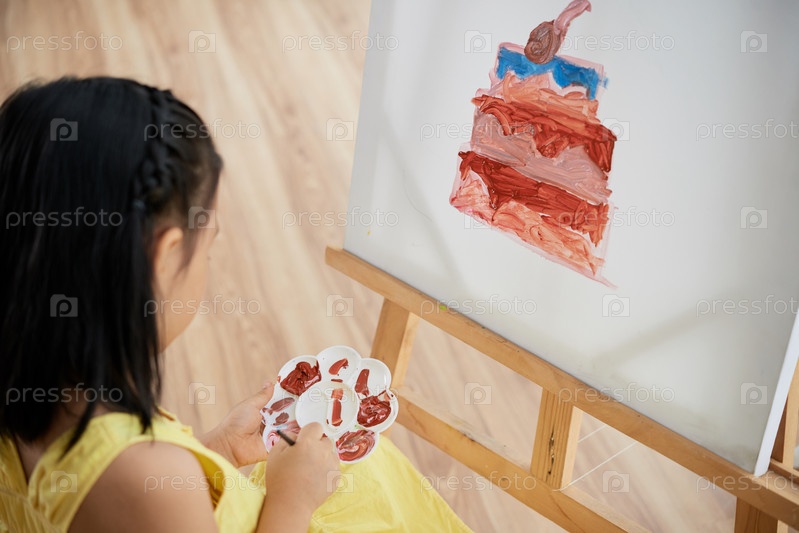 Девушка, рисующая торт