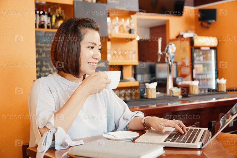 Деловая женщина, работающая в кафе