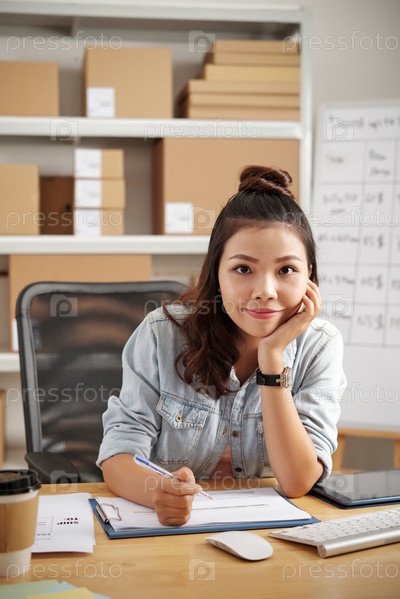 Почтовый работник заполняет документ