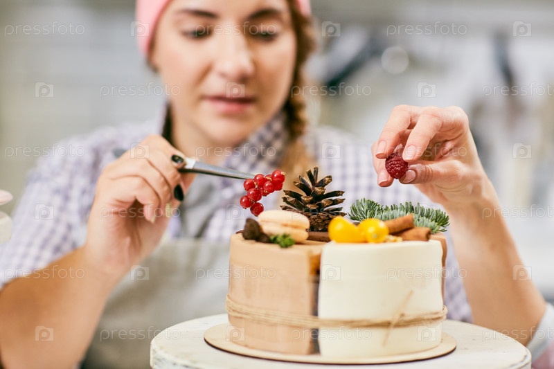 Креативная женщина украшает торт