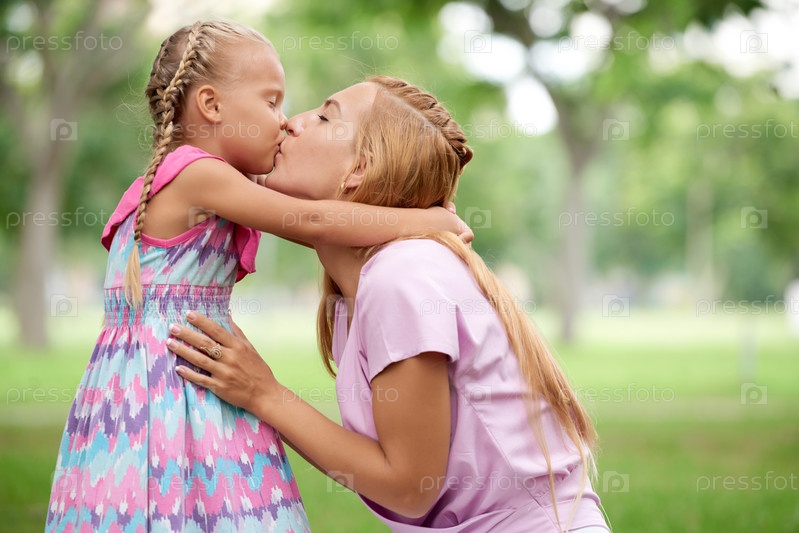 Мать целует дочь