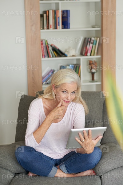 Пожилая женщина отдыхает дома