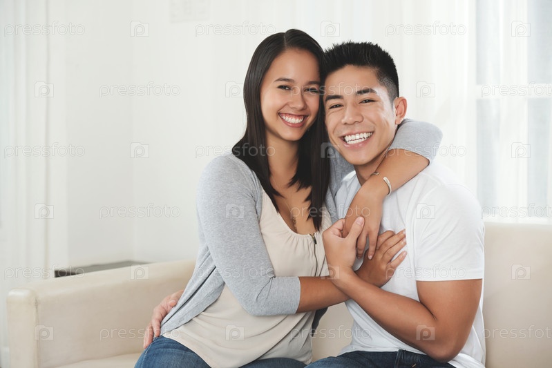 Обнимая счастливую молодую пару