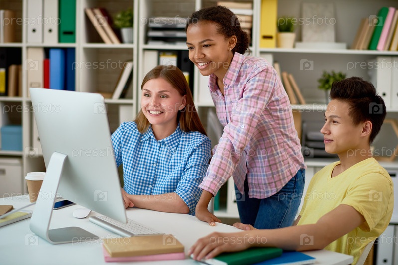 Группа студентов, работающих с компьютером