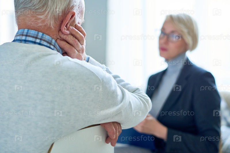 Мужчина разговаривает со старшим терапевтом