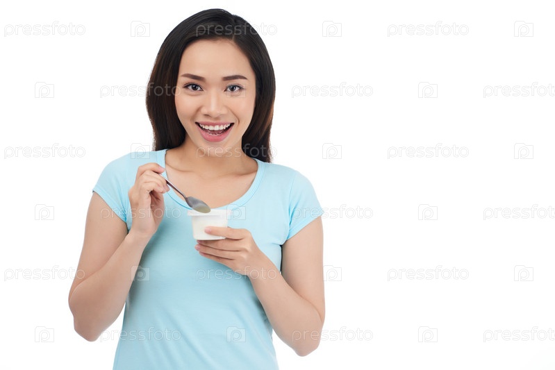 Женщина наслаждается йогуртом