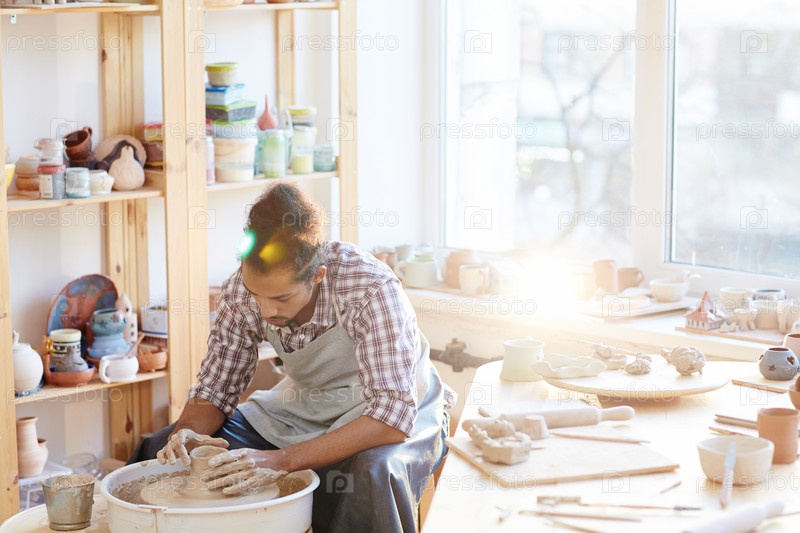 Керамик делает глиняную вазу