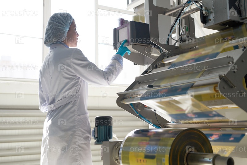 Женщина, работающая с упаковочной машиной