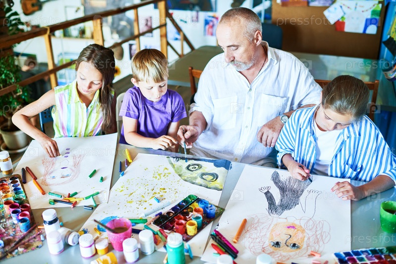 Мужчина преподает класс искусства в старшей школе