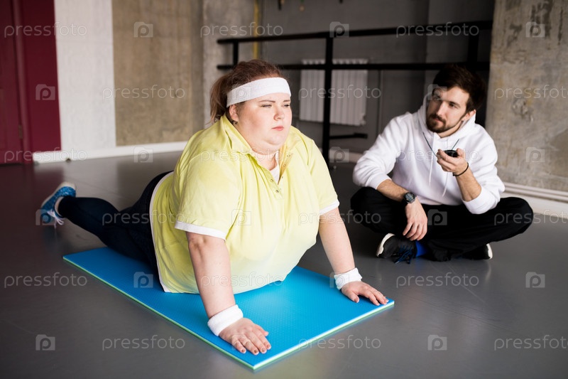 Молодая женщина с избыточным весом занимается спортом