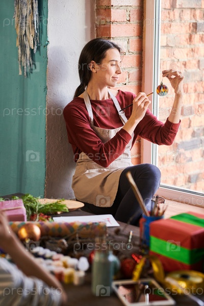 Художница, рисующая рождественские украшения