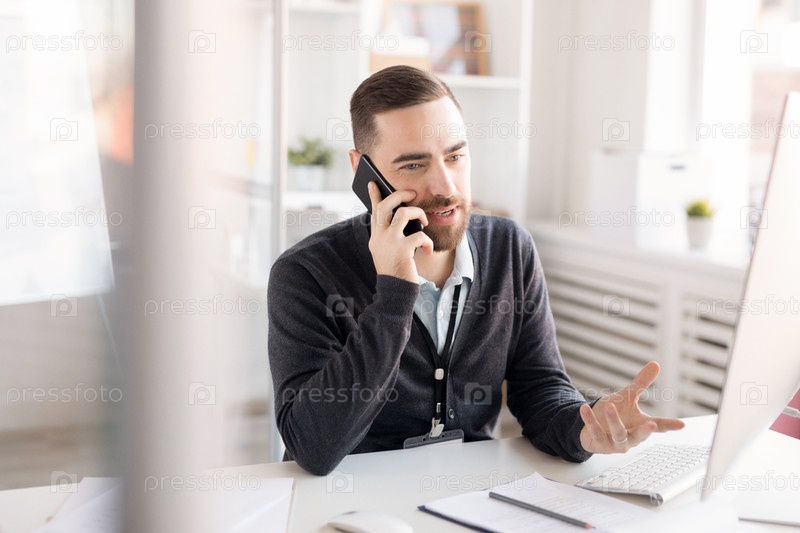 Офисный работник, разговаривающий по телефону
