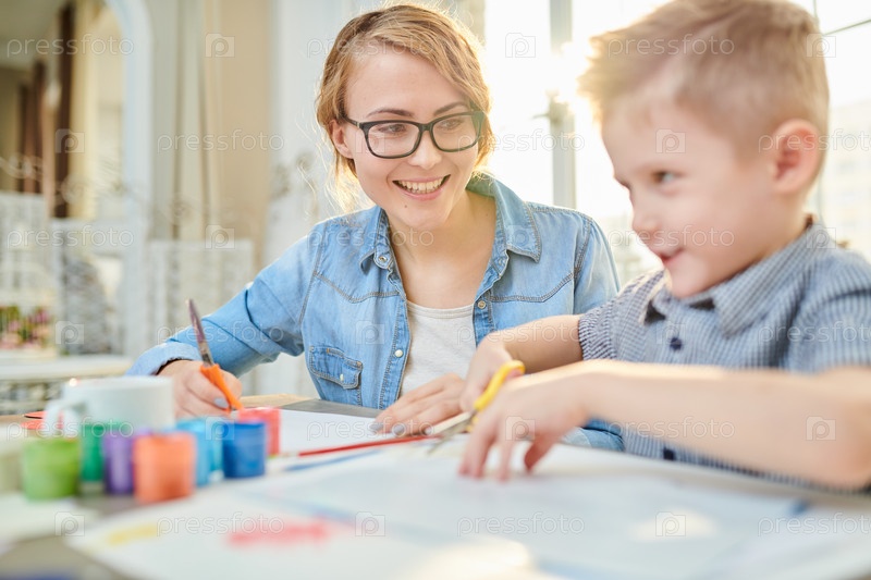 Счастливая мать и сын вместе делают изделия