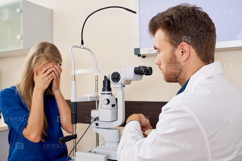 Молодая женщина на осмотре глаз