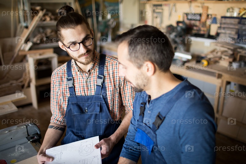 Два современных плотника обсуждают проект