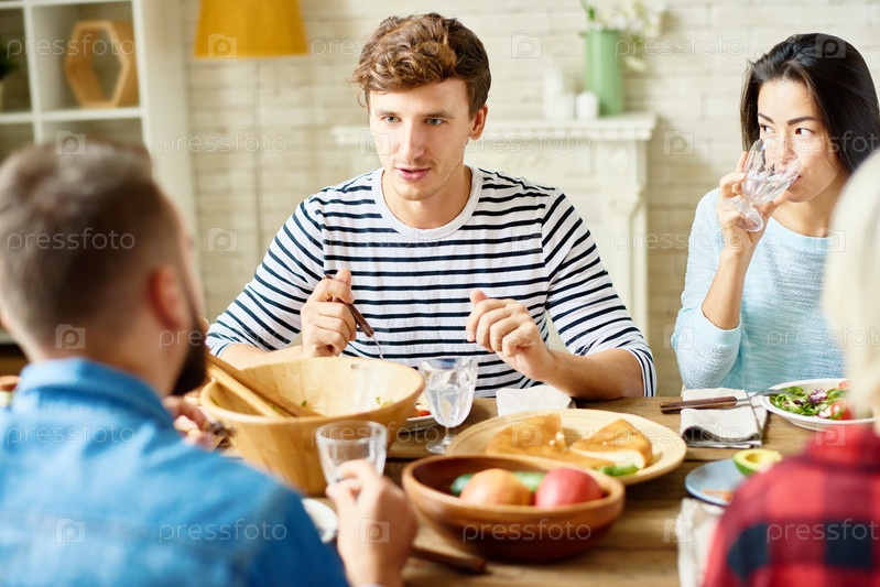 Молодой человек за ужином с друзьями