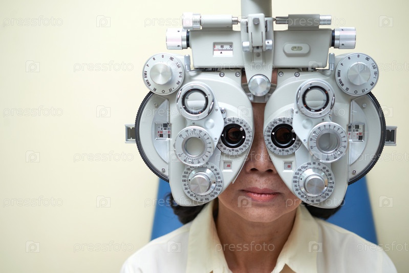 Женщина, использующая тестирующее устройство зрения