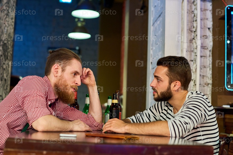 Два приятеля разговаривают в баре