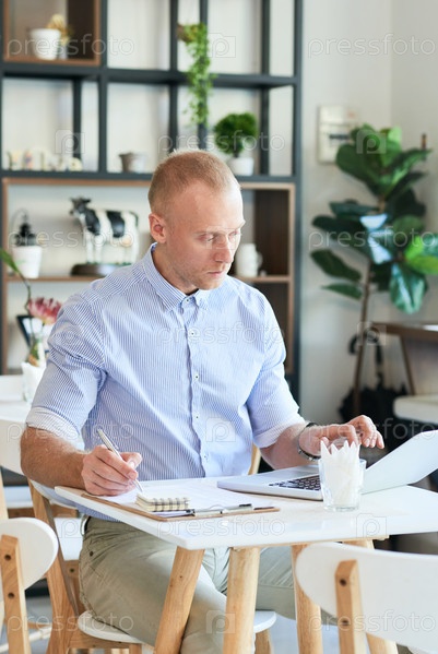 Менеджер кафе с ноутбуком и документами