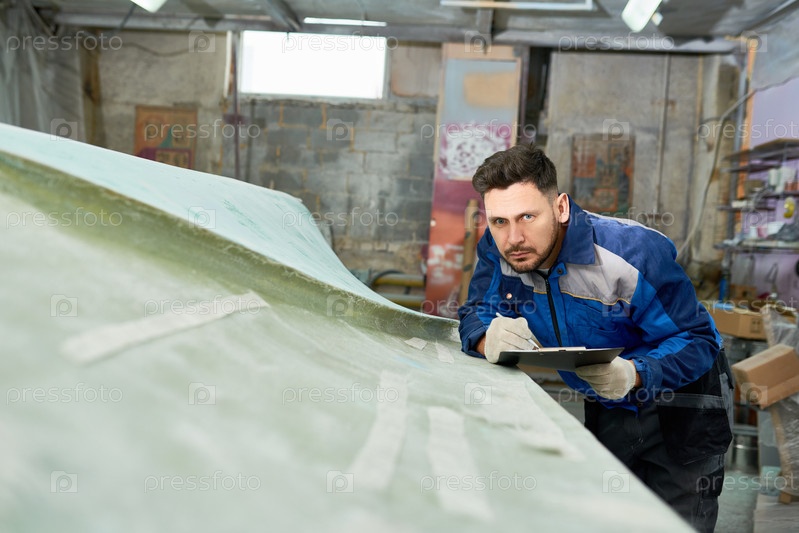 Человек, работающий в магазине по техническому обслуживанию лодок