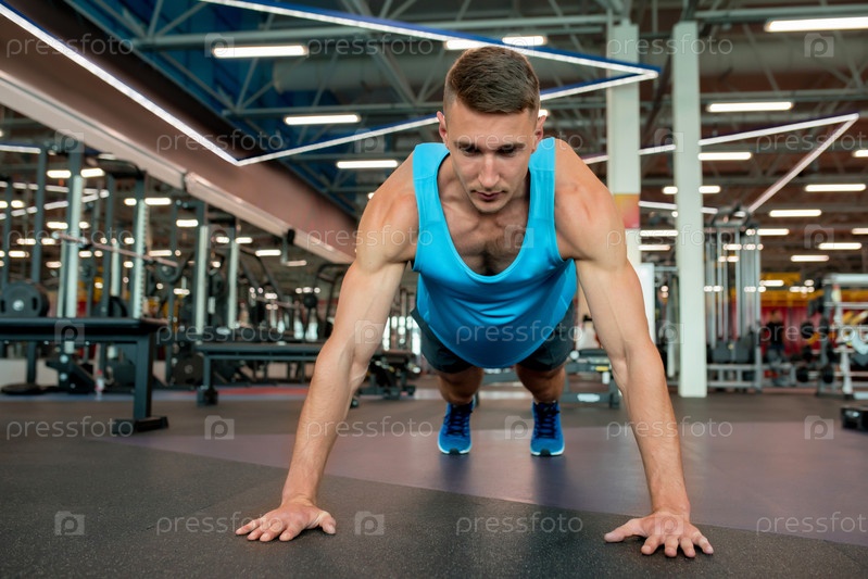 Молодой человек, тренирующийся в спортзале