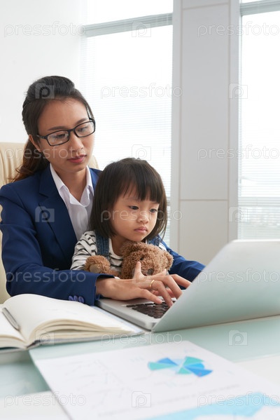 Этническая бизнесвумен с ребенком на работе