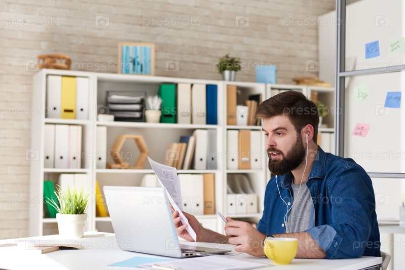 Бизнесмен в видеоконференцсвязи Современная встреча