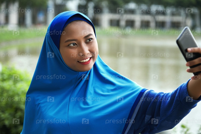 Мусульманка, делающая селфи