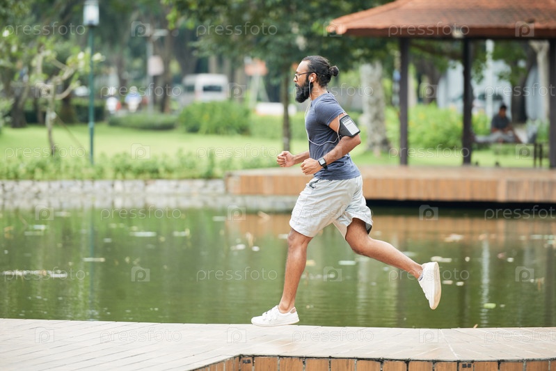 Спортсмен, бегущий в парке