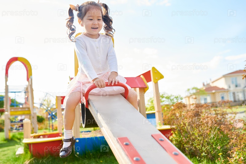 Милая азиатская девушка на детской площадке
