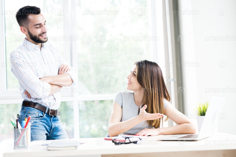 Два современных бизнесмена, разговаривающие в офисе