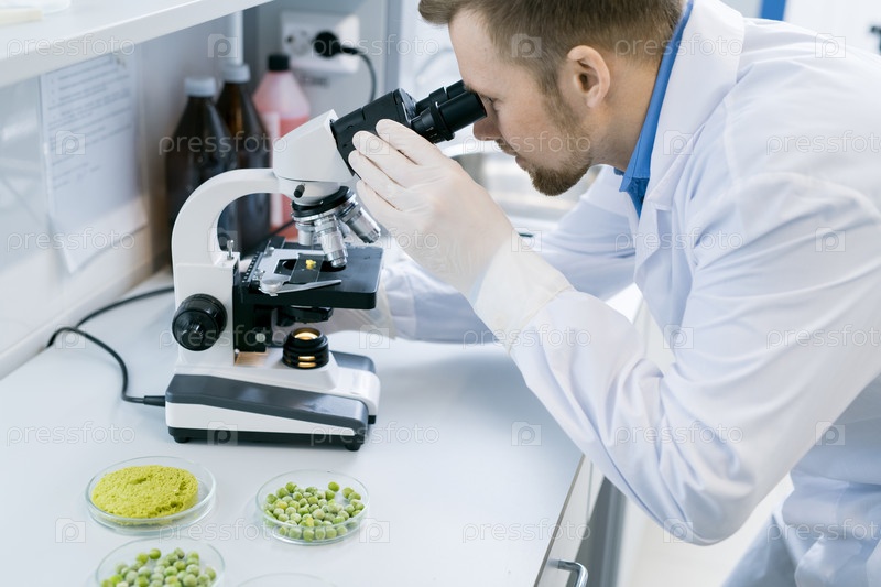 Ученый, использующий микроскоп