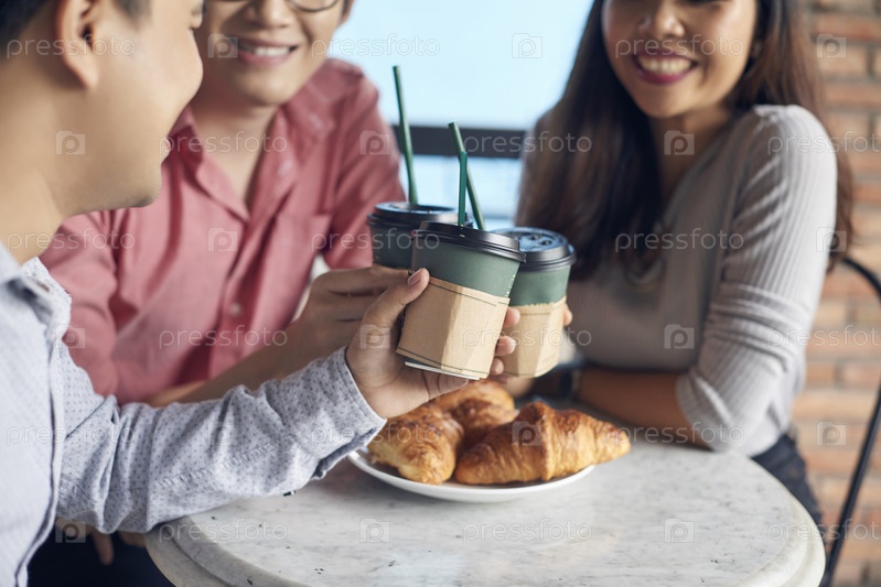 Друзья из сельскохозяйственных культур пьют кофе на обед