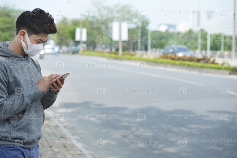 Человек в маске проверяет новости