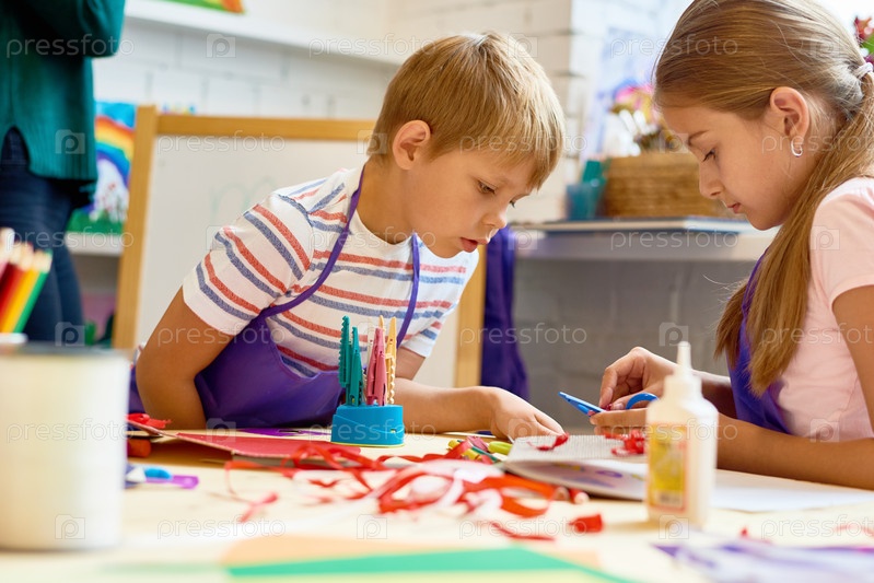 Дети делают ремесла ручной работы в школе