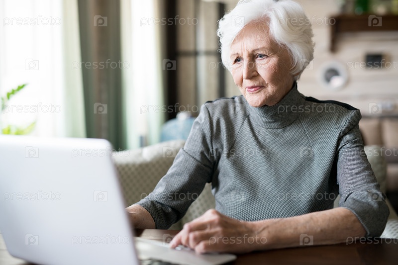 Пожилая женщина, использующая ноутбук