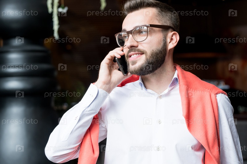 Красивый молодой бизнесмен по телефону