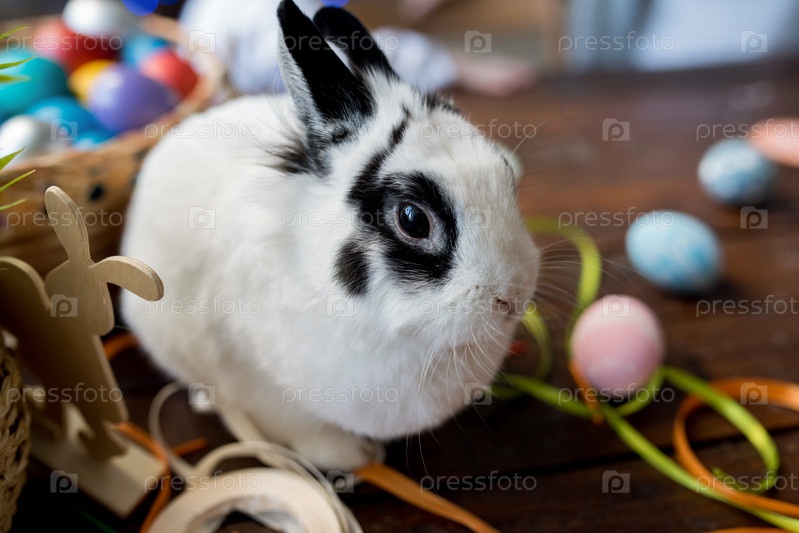 Белый кролик в пасхальный день