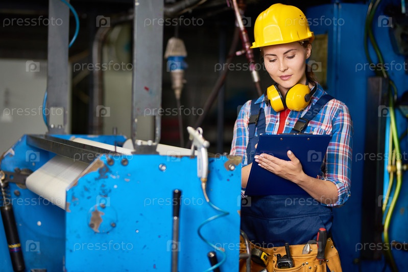 Улыбающаяся рабочая женщина на современной фабрике