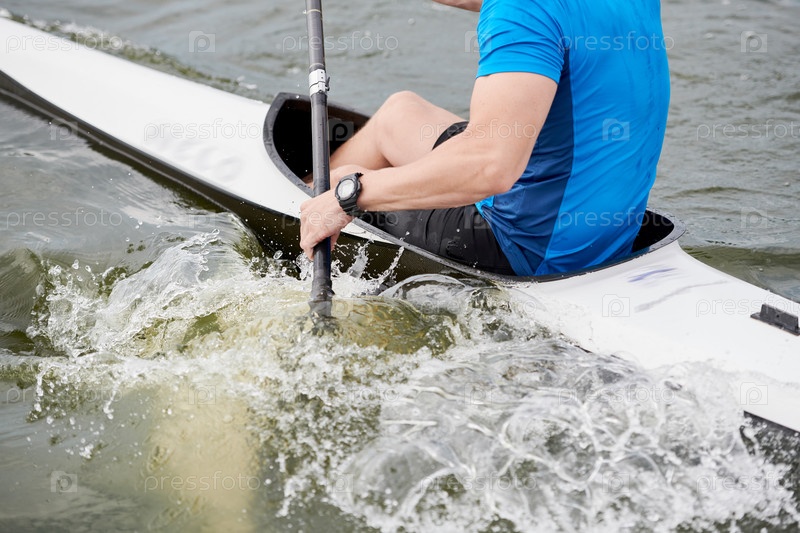 Мужчина плавает в каноэ
