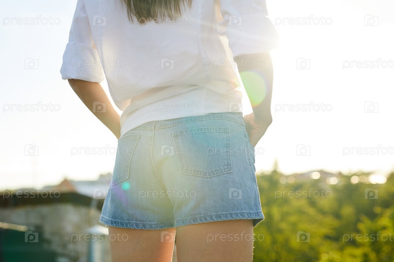 Девушка в джинсовых шортах и блузке