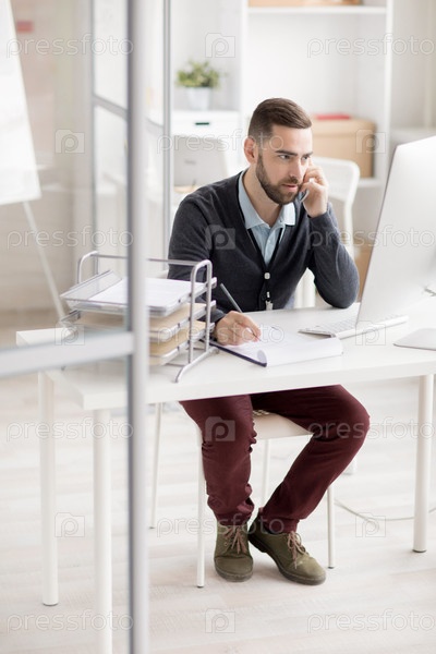 Разговор по телефону с менеджером на рабочем месте